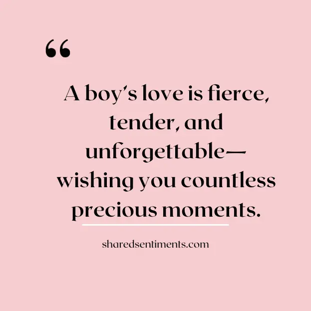 11. A boy’s love is fierce, tender, and unforgettable—wishing you countless precious moments.