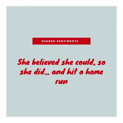4. “She believed she could, so she did… and hit a home run”