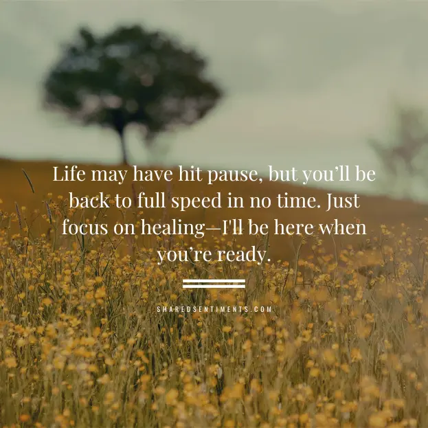 • “Life may have hit pause, but you’ll be back to full speed in no time. Just focus on healing—I’ll be here when you’re ready.”