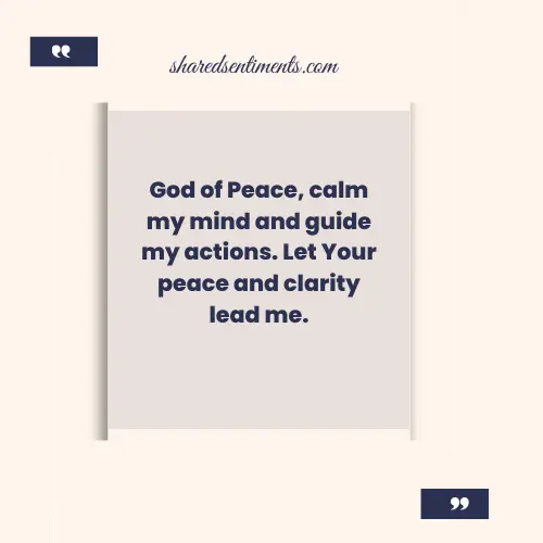 – “God of Peace, calm my mind and guide my actions. Let Your peace and clarity lead me.”
