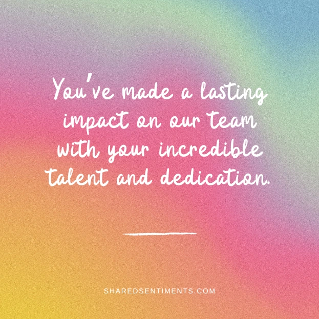 - You’ve made a lasting impact on our team with your incredible talent and dedication. Happy work anniversary!